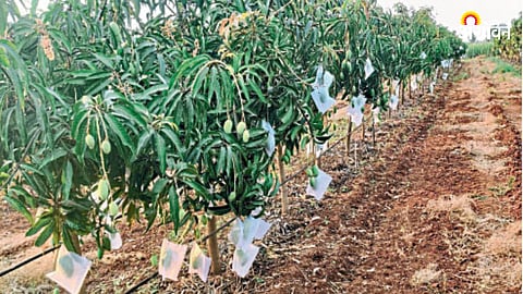 आंबा फळांचे फळमाशी आणि प्रखर सूर्यकिरणांपासून संरक्षण करण्यासाठी गोटी ते अंडाकृती आकाराची फळे असताना २५ × २० सें.मी. आकाराची कागदी/ वर्तमानपत्रापासून बनविलेल्या पिशव्यांचे आवरण घालावे. आवरण घालताना फळाच्या देठाकडे इजा होणार नाही याची काळजी घ्यावी. यामुळे फळांचा आकार व वजन वाढून डाग विरहित फळे मिळू शकतात.