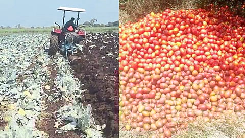 Kolhapur Farmers Prodcution : कोल्हापूर जिल्ह्यात फुलकोबीला किलोमागे अवघा २ रुपये दर मिळत आहे. शिरोळ तालुक्यातील शिरढोण गावच्या महेश विरूपाक्ष सोडगे या शेतकऱ्याने काढणीला आलेल्या उभ्या पिकावर नांगर फिरविला. सोडगे यांनी १ एकरातील पीक उद्ध्वस्त करून टाकले आहे. दरम्यान, टाकवडे, जांभळी, हरोली परिसरातील शेतकरी असे पाऊल उचलत आहेत. त्यामुळे शेतकरी आर्थिक अरिष्टात सापडला आहे. तर दानोळी भागातील एका शेतकऱ्याच्या शेतातील टोमॅटोचा उठाव होत नसल्याने शेतातच टोमॅटो कुजून जाण्याची वेळ आली आहे.