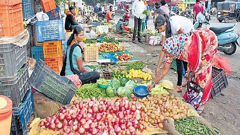 टोमॅटो- ५० ते ६०, दोडका- ५० ते ६०, वांगी - ७० ते ८०, कारली- ५० ते ६०, ढोबळी मिरची- ५० ते ६०, मिरची - ५० ते ६०, फ्लॉवर - ५० ते ६०, कोबी- ३५ ते ४०, बटाटा- ४५ ते ५०, कांदा - ३५ ते ४०, लसूण- २०० ते २५०, आले- १२० ते १४०, लिंबू - १५० ते ४०० शेकडा, गाजर - ५० ते ६०, बीन्स- १२० ते १४०, गवार - ८० ते १००, भेंडी ५० ते ६०, देशी काकडी- १०० ते १२०, काटा काकडी - ५० ते ६०, दुधी - ३० ते ४०, पालेभाज्या - १० रुपये पेंढी, कोथींबीर- ५ ते १०, मेथी - १५, कांदापात -२० ते २५, शेवगा - ८ ते १० रुपये नग.
