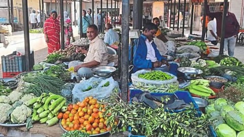 टोमॅटो- ४० ते ५०, दोडका- ६० ते ८०, वांगी - ७० ते ८०, कारली- ५० ते ६०, ढोबळी मिरची- ८० ते १००, मिरची -८० ते ९०, फ्लॉवर - ७० ते ८०, कोबी- २० ते २५, बटाटा- ३० ते ३५, कांदा - ३० ते ३५, लसूण- २०० ते २५०, आले- १२० ते १४०, लिंबू - १५० ते ५०० शेकडा, गाजर - ५० ते ६०, बीन्स- २२० ते २५०, गवार - ८० ते १००, भेंडी-४० ते ५०, काकडी- ५० ते ६०, दुधी - २० ते ३०, हिरवा वाटाणा - ७० ते ८०, पालेभाज्या - २० ते २५, कोथिंबीर - ५० ते ६०, मेथी, शेपू - ३० ते ३५, शेवगा - ८ ते १० रुपये नग.
