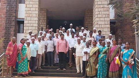 Farmers Shaktipeeth Highway : गोवा ते नागपूर शक्तीपीठ मार्ग हा आजरा तालुक्यातील सहा गावांमधून जाणे प्रस्तावित आहे. शेळप, पारपोली, सुळेरान, खेडगे, दाभिळ वाडी, आंबाडे ही गावे शक्तिपीठ महामार्ग गेल्यास बाधीत होणार आहेत. या सर्व गावातील बाधित शेतकऱ्यांनी आज (ता.२२) अखिल भारतीय किसान सभेच्यावतीने गिरीश फोंडे यांच्या नेतृत्वाखाली निवेदन व सामुदायिक हरकती प्रांताधिकारी कारवे यांना देऊन आपला विरोध दर्शवला.