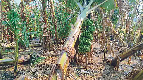 Nagar News : नगर जिल्ह्यातील नेवासे, जामखेड, श्रीगोंदा तालुक्यांत शुक्रवारी (ता. १२) सायंकाळी अवकाळी पावसाने हजेरी लावली. पावसाचा फारसा जोर नसला तरी काही भागात वादळी वारा होता. त्याचा फळबागांना फटका बसला आहे.