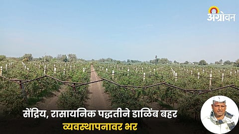 डाळिंब बागेत सेंद्रिय आणि रासायनिक या दोन्ही पद्धतीने व्यवस्थापन करत समतोल साधला आहे. लागवडीसाठी डाळिंबाच्या भगवा आणि गणेश या वाणांची निवड केली आहे. लागवड टप्प्याटप्प्याने केली आहे. २०१५ मध्ये दोन एकरांत १४ बाय ७ फूट अंतरावर २ हजार झाडे, २०१७ मध्ये ४ एकरांत १४ बाय ७ फूट अंतरावर ३ हजार झाडे, तर २०२२ मध्ये ६ एकरांत एक खोड पद्धतीने १० बाय ५ फूट अंतरावर ५ हजार झाडांची लागवड केली आहे. बागेत प्रामुख्याने हस्त बहर धरला जातो. एकाच बहराचे काटेकोर व्यवस्थापन करून दर्जेदार डाळिंब उत्पादन घेण्याचा त्यांचा प्रयत्न असतो. एकरी सरासरी ८ ते १० टन डाळिंब उत्पादन ते घेतात.