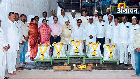 Solapur News : येथील सहकारमहर्षी साखर कारखान्यात उत्पादित झालेल्या १ लाख १ हजार १११ व्या साखर पोत्याचे पूजन अध्यक्ष जयसिंह मोहिते-पाटील यांच्याहस्ते करण्यात आले.