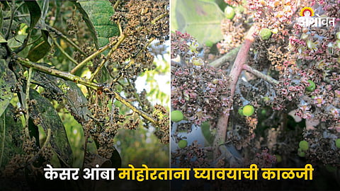 Mango Yield Protection : कोकणाव्यतिरिक्त संपूर्ण महाराष्ट्रामध्ये साधारणतः ५५ हजार हेक्टर क्षेत्रावर आंबा लागवड असून, त्यातील ९०% पेक्षा जास्त केसर वाणांचीच लागवड आहे. पूर्वी प्रामुख्याने बहुतांश लागवड ही दहा बाय दहा मीटर किंवा पाच बाय पाच मीटर या अंतरावर केली जात असे. मात्र गेल्या पंधरा वर्षापासून अतिघन लागवडीचे प्रमाण वाढले आहे. अतिघन लागवडीमध्ये ४ ×१२ फूट, ५×१४ फूट असे लागवडीचे अंतर मोठ्या प्रमाणात दिसून येते. अतिघन लागवडीचे तंत्रज्ञान माझ्या २००५ मधील दक्षिण आफ्रिकेच्या दौऱ्यामध्ये पाहिले होते.