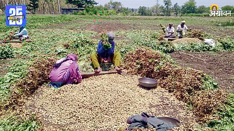 सध्या भुईमूग पीक पक्वता आणि काढणीच्या अवस्थेत आहेत. शेंगा पक्व झाल्यानंतर भुईमुगाची पान पिवळी पडतात. पानगळ सुरू होते. पक्वता किती आहे, हे पाहण्यासाठी भुईमूग उपटून पाहावा. पक्व झाल्यानंतर शेंगांचे टरफल टणक होते.