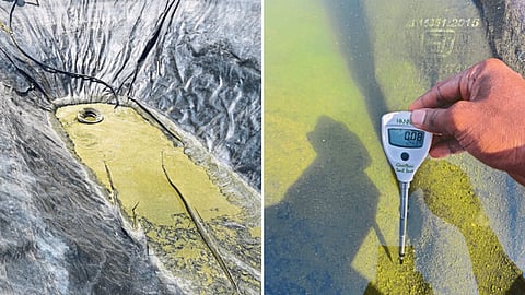 या प्रकल्पामधील संशोधन क्षेत्रावर सिंचनाचे पाणी साठविण्यासाठी बांधण्यात आलेल्या पाण्याच्या लहान तलावामध्ये वारंवार शेवाळांची लक्षणीय वाढ होत असल्याचे दिसून आले. (चित्र क्र. १). शेवाळ वाढीमुळे पाण्याचा सामू (pH) व विद्युत वाहकता वाढू शकते.