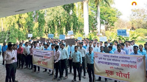 MPSC Exam Update : महात्मा फुले कृषी विद्यापीठातील (Mahatma Phule Agricultural University) कृषी पदवीधर संघटनेमार्फत ३०० विद्यार्थी व १२१ विद्यार्थिनींनी मंगळवारी (ता. ७) विद्यापीठातील क्रीडांगणापासून ते पदव्युत्तर महाविद्यालयाच्या सहयोगी अधिष्ठाता कार्यालयापर्यंत आणि जैवतंत्रज्ञान इमारतीपासून व्हीआयपी गेस्ट हाउसपर्यंत मूक मोर्चा (Student March) काढला.