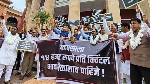 Nagpur News : कापूस, सोयाबीन आणि धानाला भाव मिळावा, यासाठी महाविकास आघाडीच्या आमदारांनी विधानभवनाच्या पायथ्याशी शुक्रवारी (ता. ८) धरणे देत सरकारविरुद्ध जोरदार घोषणाबाजी केली.