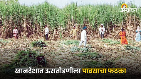 Jalgaon News : खानदेशात ऊस तोडणी सुरू होऊन काही दिवस झालेले असतानाच पाऊस आला आहे. शेतकरी अडचणीत आला असून, शेतांत वाफसा नसल्याने ऊस तोडणीदेखील रखडणार आहे.