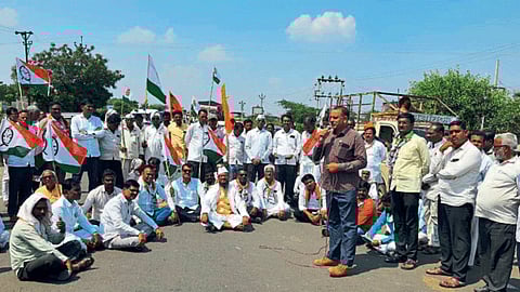 राष्ट्रवादी काँग्रेस, शिवसेना, स्वाभिमानी शेतकरी संघटना व राष्ट्रीय किसान पक्षाच्या वतीने करण्यात आलेल्या या आंदोलनामुळे शुक्रवारी सकाळी रस्त्यावरील वाहतुक बराचकाळ ठप्प झाली होती.