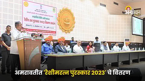 Amravati News : अमरावतीत महाराष्ट्र राज्य रेशीम संचालनालयातर्फे सोमवारी (ता. ७) उत्कृष्ट रेशीम शेतकऱ्यांचा 'रेशीमरत्न पुरस्कार २०२३' ने गौरव करण्यात आला. छत्रपती संभाजीनगर आणि अमरावती विभागातील रेशीम शेतीतील नवकल्पना, शाश्वत शेती पद्धतींचा अवलंब, तसेच उत्पादन वाढीमध्ये केलेल्या उल्लेखनीय योगदानासाठी शेतकऱ्यांना हा पुरस्कार देण्यात आला आहे.