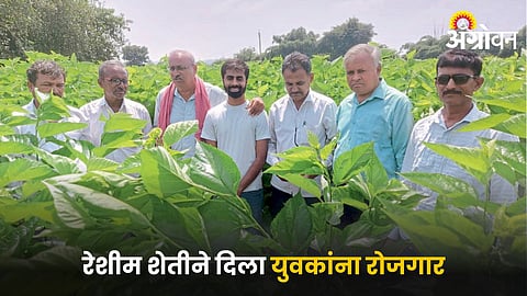 Sericulture Cultivation : देवगाव, ता. पैठण, जि. छत्रपती संभाजीनगर या गावात राज्य रोजगार हमी योजना, राज्य रेशीम विभाग, ग्रामपंचायत देवगाव तसेच तेथील शेतकरी यांच्या सकारात्मक प्रयत्नांतून आज अर्थकारण बदलले आहे. सन २०१८ मध्ये तत्कालीन रेशीम विभागाचे अधिकारी दिलीप हाके, अतुल मोहिते तसेच संभाजीनगर जिल्ह्याचे तत्कालीन जिल्हाधिकारी उदय चौधरी यांनी मौजे. देवगाव येथील प्रगतिशील शेतकरी शहादेवजी ढाकणे यांच्या शेतात रोपवाटिकेसाठी तुतीच्या काड्या रोवून रेशीम उद्योगाची मुहूर्तमेढ रोवली.