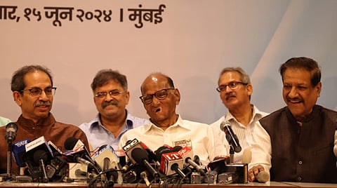 Pune News : लोकसभा निवडणुकीत भाजपला राज्यात म्हणावे तसे यश मिळाले नाही. येथे महाविकास आघाडीने बाजी मारली. तर देशाची पुन्हा एकदा सत्ता पंतप्रधान नरेंद्र मोदी यांच्या नेतृत्वात एनडीएच्या हातात गेली आहे. यादरम्यान राज्यासह देशातील शेतकरी आणि व्यापारी भाजपच्या विरोधात होता. तर या स्थितीत अद्याप बदल झालेला नाही. त्यामुळे आगामी विधानसभा निवडणुकीत याचा फायदा आपल्याला होईल, असे वक्तव्य राष्ट्रवादी शरदचंद्र पवार पक्षाचे अध्यक्ष शरद पवार यांनी केले आहे. ते मुंबईतील वाय.बी. चव्हाण सेंटरमध्ये महाविकास आघाडीची शनिवारी (ता. १५) पत्रकार परिषदेत बोलत होते. यावेळी उद्धव ठाकरे यांच्यासह पृथ्वीराज चव्हाण, संजय राऊत, जयंत पाटील, जितेंद्र आव्हाड उपस्थित होते.