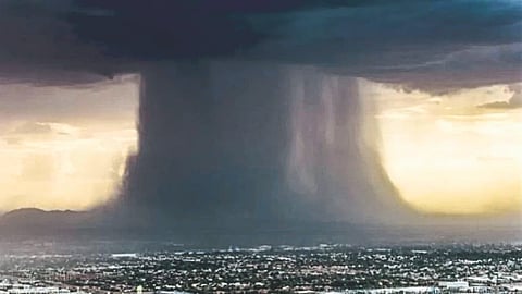 या मोठ्या थेंबांनी युक्त उभ्या ढगातील थेंब वजनामुळे वेगाने जमिनीकडे झेपावतात. मग सगळा ढग खूप मर्यादित जागेत आणि मर्यादित वेळेतच रिकामा होतो. हेच ‘क्लाउडबर्स्ट’ वा ढगफुटी. सपाट प्रदेशात हेच काम डोंगराऐवजी गरम हवेचा झोत करतो. जमिनीलगत तापलेल्या हवेचा स्तंभ तयार होतो, तो ढगात घुसतो आणि बाष्प आणि थेंबांना एकत्र करीत वेगाने वर आकाशाकडे घेऊन जातो.