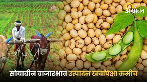 सोयाबीनचा क्विंटलचा उत्पादन खर्च ५ हजारांवर पोचला. मात्र बाजारात मिळणारा भाव उत्पादन खर्चापेक्षा क्विमान ८०० रुपयांनी कमी आहे. बाजारात सध्या सोयाबीनला सरासरी ४ हजार २०० रुपयांचा भाव मिळत आहे. म्हणजेच शेतकऱ्यांना एकरी तोटा ४ हजारांचा होत असल्याचे शेतकरी सांगत आहे. उत्पादन खर्चही निघत नसल्याने शेतकरी नाराजी व्यक्त करत आहेत.