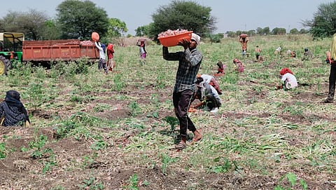 पावसाळी वातावरणातही कांदा काढणी खानदेशात सुरू होती. डिसेंबरमध्ये लागवड केलेल्या कांद्याची काढणी सुरू आहे. तर जानेवारी व जानेवारीच्या मध्यात लागवड केलेल्या कांद्याची काढणी पुढील आठवड्यात सुरू होईल. उष्णता असल्याने मजूरटंचाईदेखील आहे.