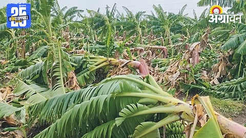Akola News : तेल्हारा तालुक्यात दाणापूर परिसरात झालेल्या वादळी वाऱ्यासह पावसामुळे शेतकऱ्यांचे मोठे आर्थिक नुकसान झाले आहे. विशेषतः केळी पिकांचे मोठ्या प्रमाणावर नुकसान झाले असून, प्राथमिक अंदाजानुसार सुमारे २५ हेक्टर क्षेत्रातील केळी पीक उद्ध्वस्त झाले आहे.