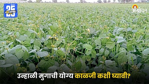 Moong Crop Management: उन्हाळ्यामध्ये स्वच्छ सूर्यप्रकाश व हवामान उष्ण असल्यामुळे मूग पीक चांगले प्रकारे येऊ शकते. उन्हाळी हंगामात मूग लागवड केल्यास रोग-किडींचा प्रादुर्भाव फार कमी प्रमाणात होतो. जर सिंचनाची सुविधा उपलब्ध असेल तर मुगाचे चांगले उत्पादन उन्हाळ्यात मिळू शकते.