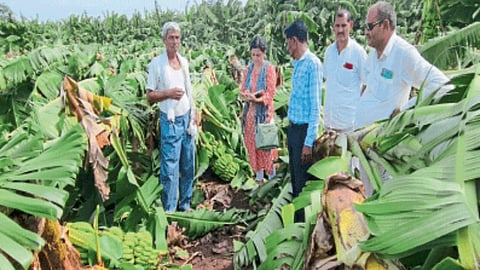 त्या आधारावर लागलीच नुकसानीचे पंचनामे केले जात आहेत. काहींची केळी शेताच्या बांधावर ठेवली जात होती. काही शेतकऱ्यांचे व्यापाऱ्यांशी बोलणे सुरू होते. काही व्यापाऱ्यांच्या गाड्यादेखील शेतात उभ्या होत्या.
