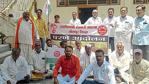 Solapur News : जिल्ह्यात गाळप हंगाम २०२३-२४ मध्ये जिल्ह्यातील साखर कारखान्यांनी गाळप केलेल्या उसाची बिले मोठ्या प्रमाणात थकविली आहेत. त्यामुळे स्वाभिमानी शेतकरी संघटनेच्या वतीने सोलापुरात साखर सहसंचालक कार्यालयासमोर शुक्रवारी (ता. ९) धरणे आंदोलन करण्यात आले.