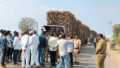 Satara News : जरंडेश्वर शुगर मिलने मागील वर्षी गाळलेल्या उसाचे प्रतिटन ४०० रुपये द्यावेत, चालू गळीत हंगामात प्रतिटन साडेतीन हजार रुपये दर जाहीर करावा, या मागणीसाठी स्वाभिमानी शेतकरी संघटनेने गुरुवारी (ता. २३) कारखान्याची ऊस वाहतूक सुमारे चार तास रोखून धरली.