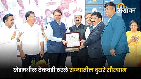उपमुख्यमंत्री फडणवीस यांच्याहस्ते ‘सौरग्राम’चे सन्मानचिन्ह व प्रमाणपत्र सरपंच विठ्ठल शिंदे, महावितरणचे मुख्य अभियंता राजेंद्र पवार, अधीक्षक अभियंता युवराज जरग यांनी स्वीकारले. या वेळी फोरविया फाऊंडेशनचे ओंकार साळवी, सौर प्रकल्पाचे कंत्राटदार मुकेश माळी यांचाही गौरव करण्यात आला.