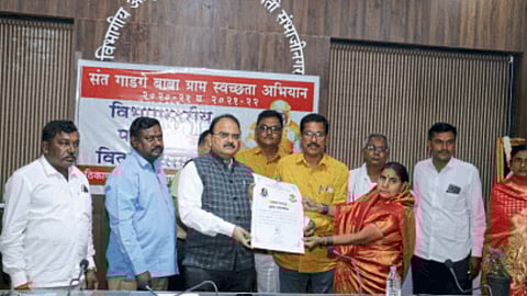 विभागीय आयुक्त कार्यालयात विभागीय स्तरावरील संत गाडगेबाबा ग्राम स्वच्छता अभियानअंतर्गत २०२०-२१ व २०२१-२२ या वर्षातील संत गाडगेबाबा ग्रामस्वच्छता व विशेष पुरस्कार वितरण विभागीय आयुक्त अर्दड यांच्या हस्ते झाले. या वेळी विभागीय विकास उपायुक्त सुरेश बेदमुथा, सहायक आयुक्त सिमा जगताप उपस्थित होते.