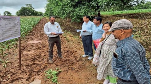 विभागीय कृषी संशोधन केंद्रातील मृदा शास्त्रज्ञ डॉ. प्रवीण गजभिये यांनी विभागीय कृषी संशोधन कार्यक्षेत्रात असणाऱ्या जमिनीची माहिती दिली. या वेळी विभागीय संशोधन केंद्रामधील नाचणी पैदासकार डॉ. योगेश बन, कृषी अर्थशास्त्रज्ञ डॉ. बाबासाहेब कांबळे, पशुविज्ञान तज्ज्ञ डॉ. संभाजी जाधव, कीटकशास्त्र विषयक सुशांत महाडीक, वरिष्ठ संशोधन सहायक ग्रामीण मौसम विभागाचे तंत्रज्ञ डॉ. मयूर सुतार आदी उपस्थित होते. सूत्रसंचालन डॉ. सुहास भिंगारदेवे यांनी केले. चिनके व मौजे नाझरे (जि. सोलापूर) येथील शेतकऱ्यांच्या प्रक्षेत्रावर घेण्यात आलेल्या मका आद्यरेखा प्रात्यक्षिक प्रक्षेत्राची पाहणी शास्त्रज्ञ पथकाने केली.