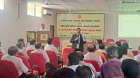 Chhatrapati Sambhajinagar : येथील राष्ट्रीय कृषी संशोधन प्रकल्पाच्या सभागृह शुक्रवारी (ता. १४) पार पडलेल्या विभागीय संशोधन व विस्तार सल्लागार समितीच्या बैठकीत कृषी विभागाकडून गत हंगामात आलेल्या २७ प्रत्याभरण समस्या शास्त्रज्ञान समोर मांडल्या. महिनाअखेर मराठवाड्यातील तालुका कृषी अधिकाऱ्यांची पीक संरक्षण विषयक प्रशिक्षण घेण्याचे वसंतराव नाईक मराठवाडा कृषी विद्यापीठाकडून सांगण्यात आले.