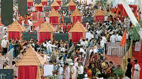 सामाजिक, आध्यात्मिक, शारीरिक आणि आर्थिक प्रगती साधण्यासाठी ‘सकाळ’तर्फे नवी मुंबईत दोन दिवस ‘संकल्प ते सिद्धी सोहळा’ आयोजित करण्यात आला होता. श्रीगुरू बालाजी तांबे यांच्या आशीर्वादाने झालेल्या पादुका दर्शन उत्सव सोहळ्याची ओढ दुसऱ्या दिवशीही कायम दिसली. सोहळ्याच्या पहिल्या दिवशी दर्शनासाठी गुरुसेवकांच्या रांगा लागल्या होत्या. दुसऱ्या दिवशीही हरिनामाचा जप, बाल वारकऱ्यांचे सादरीकरण, शंखनाद, दिंडी, माउलींचे रिंगण, अभंगाचे सूर, भक्तीचा ओसंडून वाहणारा निर्मळ झरा आणि डोळ्यात संत-महात्म्यांच्या पादुका दर्शनाची आस असे भावपूर्ण वातावरण पाहायला मिळाले.