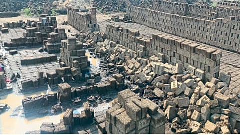 भट्टी लावण्यासाठी उघड्यावर ठेवलेला कोळसाही भिजला आहे. त्यामुळे वीटभट्टी चालकांचे कोट्यवधींचे नुकसान झाले असून नवीन कोळसा आणण्यासाठी भुर्दंड पडणार आहे.