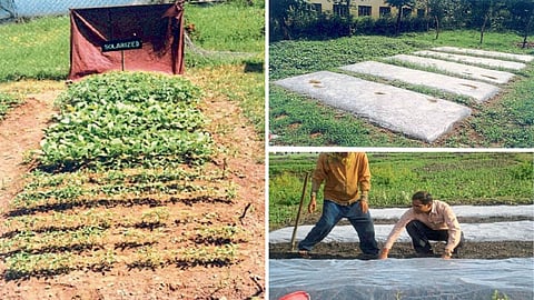 पॉलिथिन काढल्यानंतर स्वच्छ खुरप्याने किंवा कुदळीने माती भुसभुशीत करावी. त्यानंतर पाणी देऊन दोन-तीन दिवसांनी वाफ्यावर बियांची पेरणी करावी.