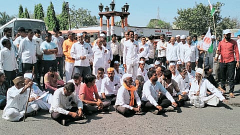 Nashik News : कांदा निर्यातबंदीमुळे कांद्याचे दर घसरले असून, केंद्र सरकारने कांद्यावरील निर्यातबंदी तत्काळ मागे घ्यावी, या मागणीसाठी देवळा येथे पाचकंदीलवर शुक्रवारी (ता.९) स्वतंत्र भारत पक्षाचे ग्रामीण जिल्हाध्यक्ष प्रवीण आहिरे, शेतकरी संघटनेचे जिल्हा उपाध्यक्ष शैलेंद्र कापडणीस, देवळा तालुकाध्यक्ष माणिक निकम यांच्या ८ नेतृत्वाखाली ‘रास्ता रोको’ करण्यात आले. या रास्ता रोको आंदोलनामुळे देवळा-नाशिक मार्गावरील वाहतूक सेवा ठप्प झाली होती.