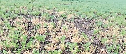 वातावरणातील बदल आणि बीज प्रकियेचा अभाव यामुळे सध्या हरभरा पिकावर (Chana Crop) मर रोगाचा प्रादुर्भाव दिसून येत आहे. हा बुरशीजन्य रोग (Fungal Disease) असून‘फ्युजेरियम ऑक्सिस्फोरम’या बुरशीमुळे होतो. या रोगाची लक्षणे साधारणपणे पेरणीनंतर ३ ते ४ आठवड्यांनी दिसून येतात. पीक वाचविण्यासाठी मर रोगाची लक्षणे ओळखून वेळीच नियंत्रण करणे गरजेचे असते. मर रोगाची लक्षणे आणि उपाय काय आहेत? याविषयी डॉ. डी. वाय. पाटील कृषी महाविद्यालय, तळसंदे येथील हर्षवर्धन मारकड यांनी दिलेली माहिती पाहुया.