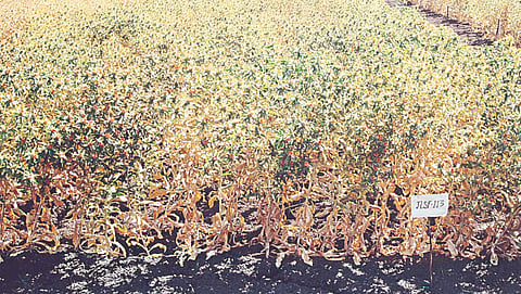 १) कोरडवाहू पीक १२० ते १३० दिवसात आणि बागायती पीक (Horticultural crop) १३० ते १४० दिवसात तयार होते. काढणी झाडावरील सर्व पाने, बोंडे पिवळी पडून वाळल्यानंतर तसेच झाडाच्या फांद्या व दाणे टणक झाल्यावर काढणी करावी.