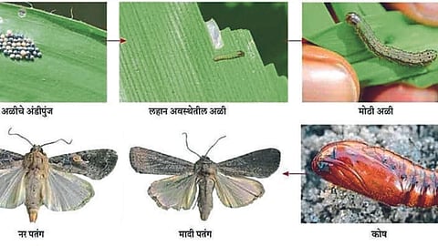 १. पिकावर वाढणारी लक्षणे अळीची वाढ दर्शवितात.