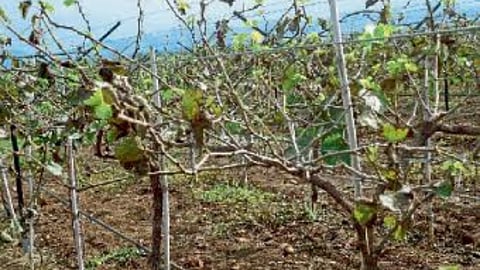 बागेमध्ये ५० ते ६० टक्के पानगळ झालेली असल्यास व छाटणी उशीर घेणार असल्यास शेंड्याकडील फुटी थांबवण्याचे टाळून पुन्हा पाच ते सहा पाने वाढू द्यावीत. यानंतर बोर्डो मिश्रणाची एक टक्का तीव्रतेची फवारणी करावी. कोवळ्या पानांवर स्कॉर्चिंग आल्यामुळे अशी पाने मरणार नसली तरी आवश्यक तितके अन्न तयार करणार नाहीत. त्यामुळे काडीमधील अन्नद्रव्याचे नुकसान टळेल व काडीची परिपक्वता मिळवता येईल.