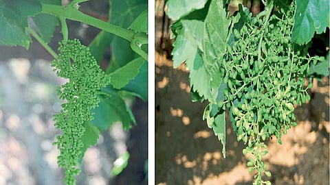 कॅनोपी प्रमाणापेक्षा जास्त असल्यास, घड सतत सावलीत राहत असल्यास फवारणी टाळावी.