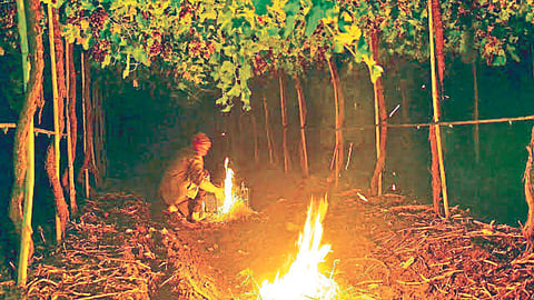 - द्राक्ष बागेस सभोवती गोणपाट किंवा इतर कापडांचे पडदे लावावेत. याचा उपयोग बागेत थंड हवेची लाट अडवली जाते.