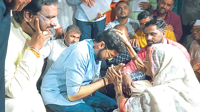 जुन्नर, शिरूर, जि. पुणे ः ‘‘राज्यात गद्दारीने स्थापन झालेल्या घटनाबाह्य सरकारचे निर्दयीपणे काम चालू असून, लोकसेवा विसरून सत्तेत मश्गूल असलेल्या सत्ताधाऱ्यांनी केवळ राजकारणावर लक्ष केंद्रित केले आहे. सद्यःस्थितीत अस्मानी संकटामुळे हवालदील झालेल्या शेतकरी बांधवांना सावरता येत नसेल, तर सरकारने चालते व्हावे,’’ असा इशारा शिवसेना (Shivsena) नेते आणि माजी मंत्री आदित्य ठाकरे (Adity Thakrey) यांनी दिला. शेतकऱ्यांनी सर्व मंत्र्यांसाठी ‘नुकसान भरपाई (Crop Insurance)देता की घरी जाता’ हा नारा बुलंद करावा,’’ असे आवाहनही त्यांनी केले.