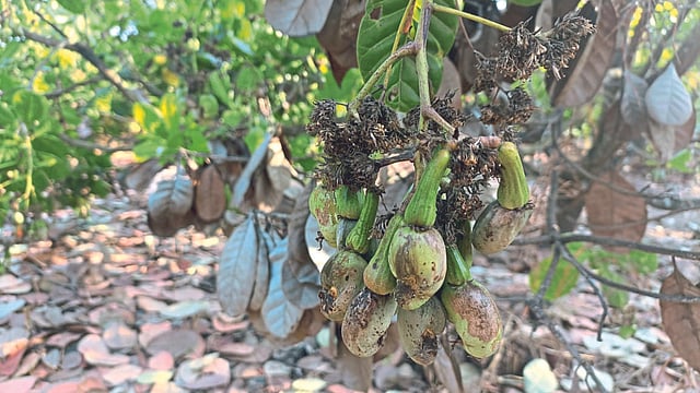 तीन चार दिवस सलग जोरदार वारे वाहत असल्यामुळे काजूचे मोठे नुकसान झाले आहे. वाऱ्याने काजू बी पडली, पाने गळून पडली. परंतु त्यापेक्षा अधिक दुष्परिणाम आता दिसून येत आहेत.