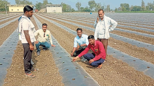 तेल्हारा तालुक्यात हिंगणी बुद्रुक येथे शेतकरी सचिन कोरडे यांच्या शेतात कलिंगड लागवड सुरु झाली असताना तालुका कृषी अधिकारी नरेंद्र राठोड, कृषी सहायक महेश इंगळे यांनी भेट देवून पिकाचे व्यवस्थापन, लागवड पद्धत, पाणी व्यवस्थापनाबाबत उपस्थित शेतकऱ्यांना मार्गदर्शन केले.