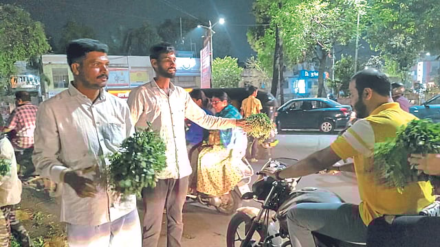 मेथी आणि कोथिंबिरीच्या जुडीला ७ ते १० रुपये प्रतिजुडी दर मिळणे अपेक्षित असताना अवघा १ रुपया दर मिळत आहेत. नाशिक बाजार समितीत (Nashik APMC) शुक्रवारी (ता. ३) शेकड्याला १०० रुपये बोली लागल्याने संतापलेल्या शेतकऱ्याने पंचवटी परिसरातील दिंडोरी नाक्यावर मेथी फुकट वाटली.