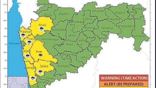 जोरदार पावसाचा इशारा (येलो अलर्ट) :