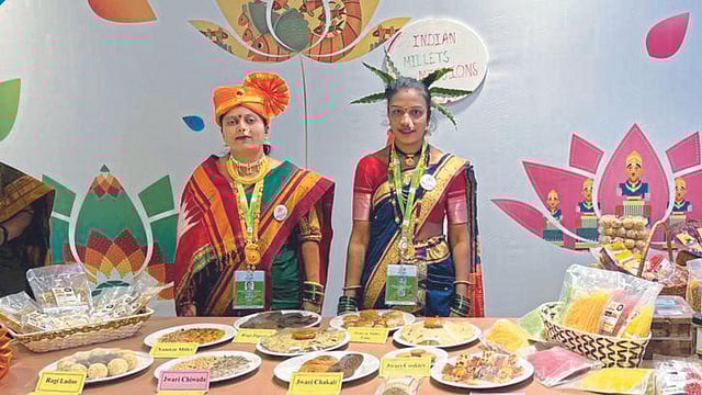 त्यात ज्वारीची भाकरी, बिस्किट, शेवया, केक, चकली, कुकीज, पापड, पोहे आणि रवा यासारखी ३५ उत्पादने ठेवली होती. या मांडणीसह हे पदार्थ शरीरासाठी किती पौष्टिक आणि आरोग्यदायी आहेत, याची माहितीही त्यांनी प्रदर्शनासाठी आलेल्या विदेशी पाहुण्यांना दिली. तर रायगडच्या बचतगटाने नाचणीच्या पदार्थांची मांडणी यामध्ये केली होती. भारती कातकरी यांनी त्याविषयीची माहिती दिली.