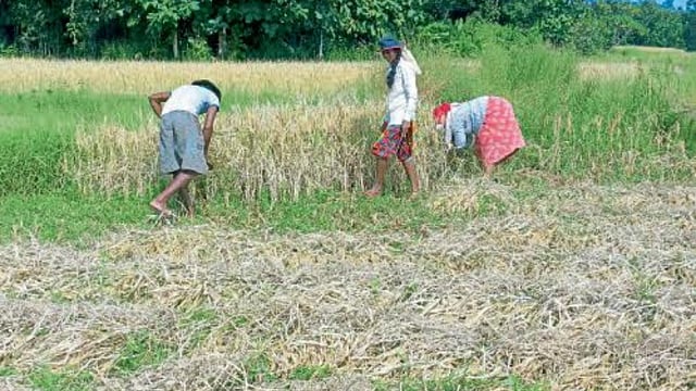 सिंधुदुर्गनगरी ः जिल्ह्यात गेल्या पंधरा दिवसांत अवघी पाच टक्केच भातकापणी (Paddy Harvesting) झाली आहे. परतीच्या पावसामुळे भातकापणी (Paddy) रखडली होती. परंतु गुरुवारी (ता. २०) पावसाने उघडीप देताच काही शेतकऱ्यांनी कापणीला सुरुवात केली आहे.