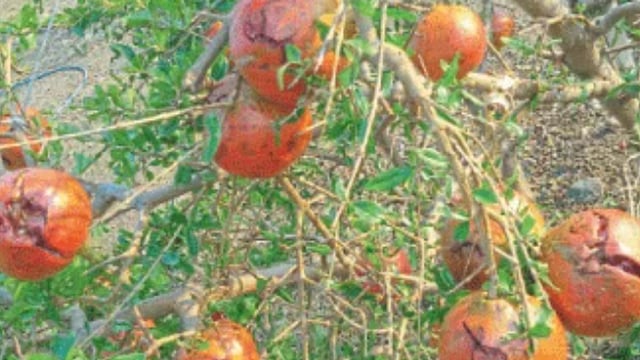 दरम्यान, डाळिंबाचे फळ पेरुच्या आकाराचे होते. परंतु तेलकट रोगाचा प्रादुर्भाव दिसून येत होता. डाळिंब पिकाला पोषक असे वातारवण नसल्याने फुलांचे सेटिंग झाले नाही. त्यातच डाळिंबाचा आकार काहीसा वाढला नाही. ३० हजार हेक्टरपैकी १० हजार हेक्टरवरील बागांचे गेल्या महिन्यात नुकसान झाले.