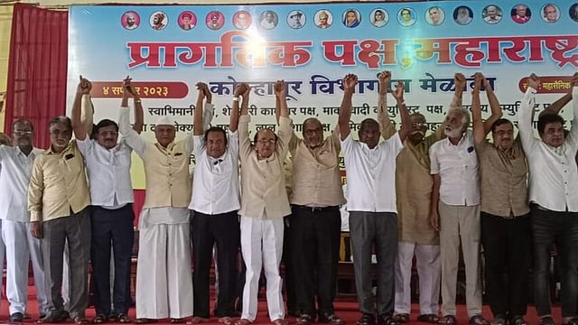 Kolhapur News : शेतकरी नेते माजी खासदार राजू शेट्टी आणि शेतकरी पक्षाचे आमदार जयंत पाटील यांच्या मार्गदर्शनाखाली राज्यातील छोट्या मोठ्या पक्षांची मोठ बांधण्याचा प्रयत्न होत आहे. दरम्यान आगामी निवडणुकांच्या पार्श्वभूमिवर प्रागतीक पक्षांचा काल महासैनिक दरबार हॉल कोल्हापूर येथे मेळावा पार पडला. यावेळी विवीध संघटना पक्षांचे नेते उपस्थित होते.