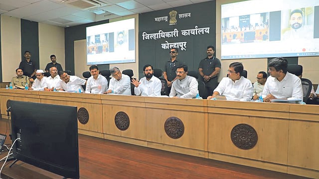 जिल्हाधिकारी कार्यालयातील महाराणी ताराराणी सभागृहात आयोजित जिल्ह्यातील पूरपरिस्थिती आढावा बैठकीत श्री. शिंदे बोलत होते. या वेळी मंत्री चंद्रकांत पाटील, राज्य नियोजन मंडळाचे कार्यकारी अध्यक्ष राजेश क्षीरसागर, महाराष्ट्र कृषी शिक्षण व संशोधन परिषद पुणे उपाध्यक्ष प्रकाश आबिटकर, खासदार धनंजय महाडीक, धैर्यशील माने, आमदार प्रकाश आवाडे, आमदार राजेंद्र पाटील-यड्रावकर, जिल्हाधिकारी राहुल रेखावार, मुख्य कार्यकारी अधिकारी संजयसिंह चव्हाण, कोल्हापूर परिक्षेत्राचे विशेष पोलिस महानिरीक्षक डॉ. मनोजकुमार लोहिया, पोलिस अधीक्षक शैलेश बलकवडे, निवासी उपजिल्हाधिकारी दत्तात्रय कवितके आदी उपस्थित होते.